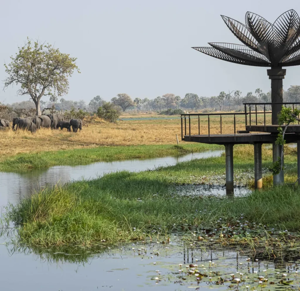 Xigera Safari Lodge rests effortlessly in a remarkable corner of the Okavango Delta, amid the expansive wetlands of the Moremi Game Reserve. The area is clearly visible on satellite images as a hand-shaped emerald and sapphire smear of paint against the tawny canvas of northern Botswana.