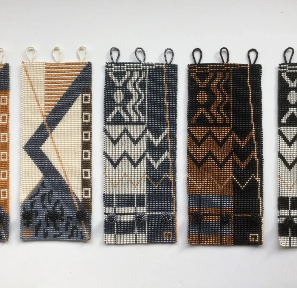 Gillian Fuller’s finely beaded bracelets feature layered geometric patterns and combine the tradition of Zulu beading with patterns inspired by the Art Deco and Bauhaus western aesthetic movements. The contrast and collision of these cultures makes Gillian Fuller’s bracelets unique and engaging.