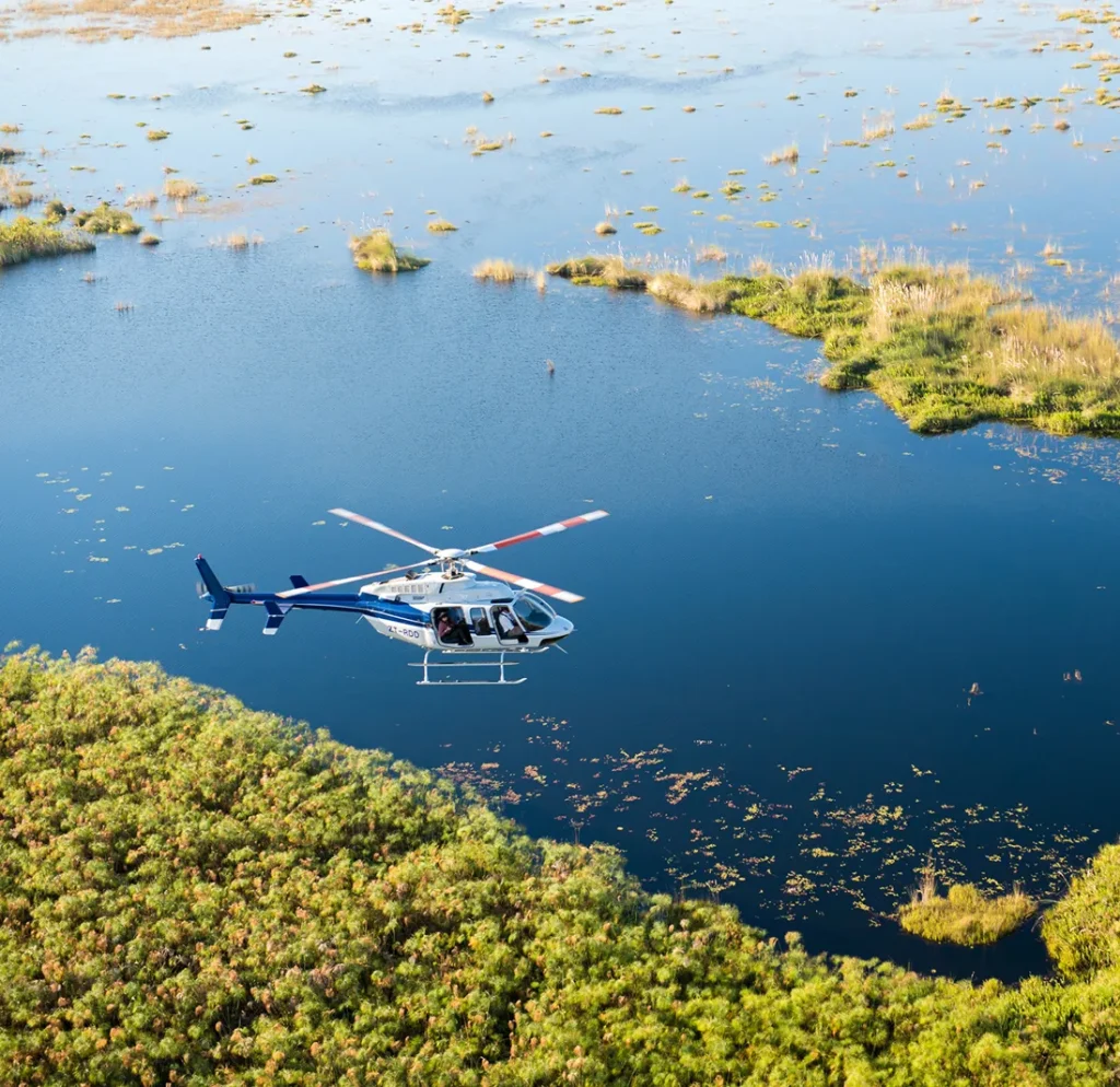 - Helicopter flight back to Xigera